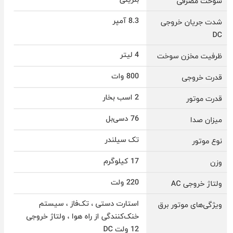 موتور برق دو زمانه که با بنزین و روغن کار میکند سبک و قابل حمل است 800 وات 220 ولت تک سیلندر